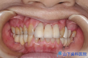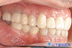| 咬み合せの状態がよく、左右均等に何でも噛めて、不安なくなり、体調もよくなったとご満足頂いています。 | ![]() ![]() |