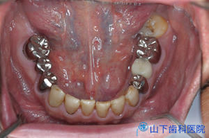 下の奥歯が全部無くなって私費で作った入れ歯は思うように噛めず、なにか手立てがないものか、相談に来られました。