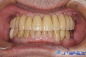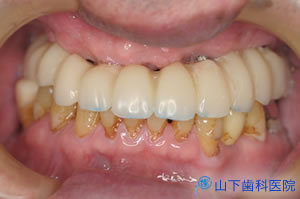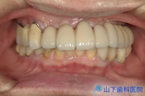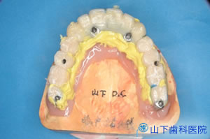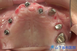 そこでインプラントによる上顎全顎の固定式フルブリッジをご提案し、了解を得ました。