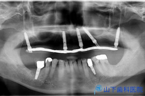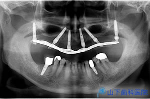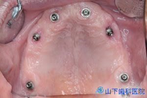 | 1度にインプラント体6本を埋入して仮の上部構造体まで装着したところです。 | ![]() |